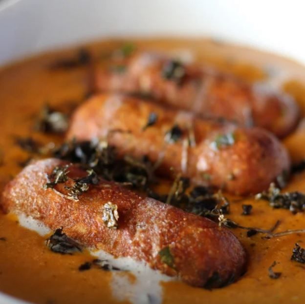 Soya chaap grilled in clayoven and cooked in punjabi-style onion, tomato gravy