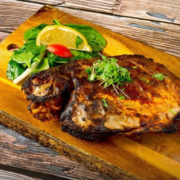 Mahi mahi cubes marinated in a tangy marinated of yoghurt, garlic, lemon juice and spices grilled in the tandoor