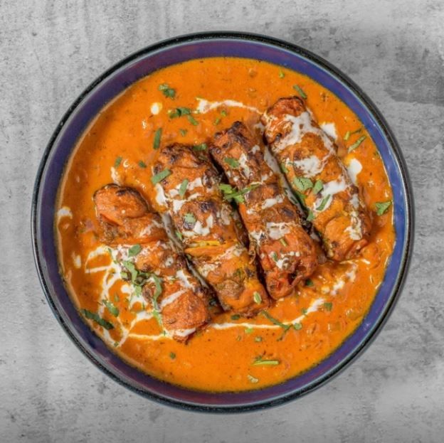Pieces of tandoori chicken cooked in creamy tomato sauce. Flavored with fenugreek
