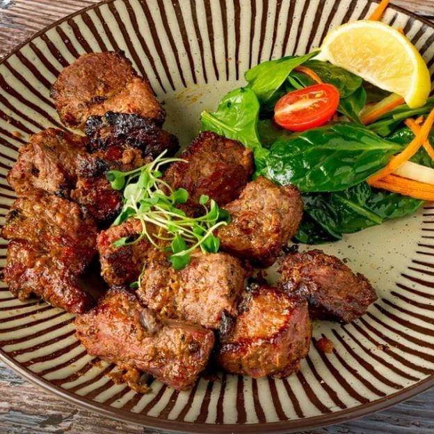 Chunks of lamb soaked in a mixture of yogurt, garlic, ginger, papaya, and spices. Roasted in tandoor