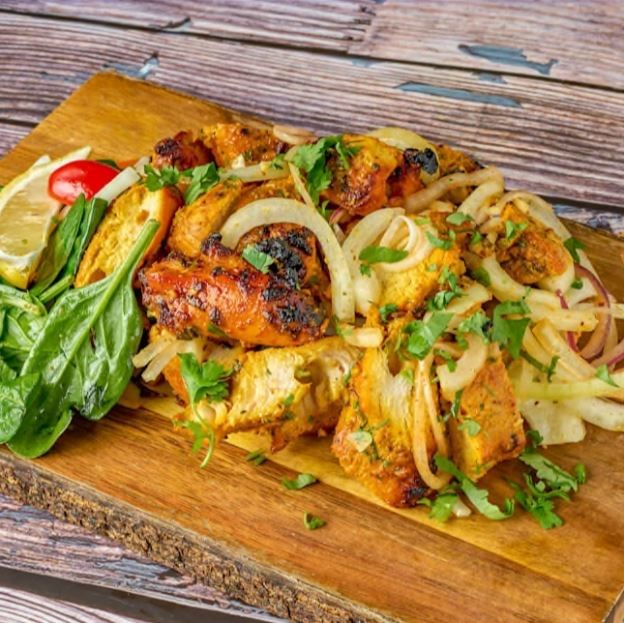 Boneless chicken cubes marinated with fresh garlic, ginger and creamy yogurt. Cooked in tandoor