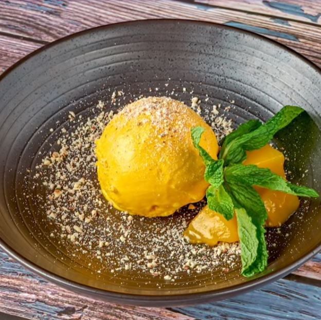 Chunks of chicken and sweet mangos cooked in chef special gravy