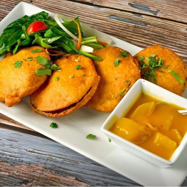 Cottage cheese fried with chickpea batter. Served with mango chutney