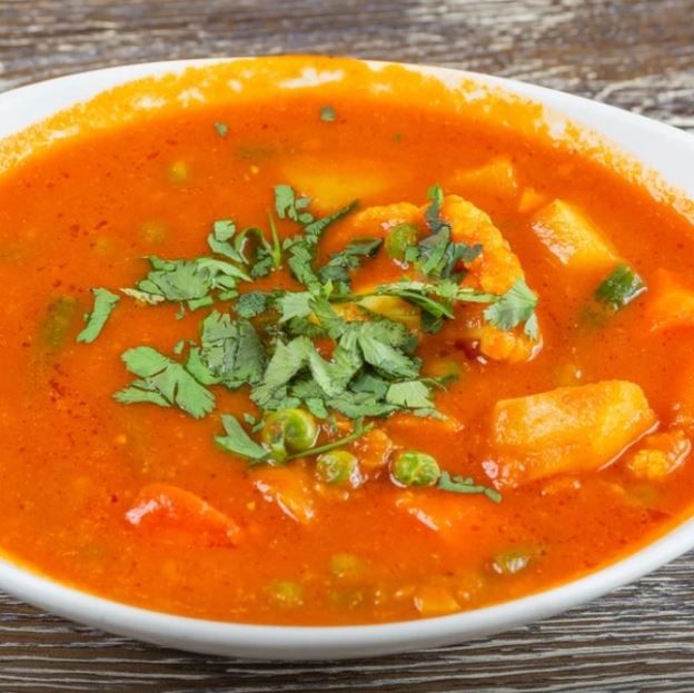 Hot. Mixed vegetable cooked in a thick spicy gravy
