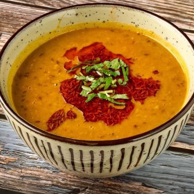 Medley of yellow lentils cooked and sautéed with onions, tomatoes, tempered with cumin and fresh garlic