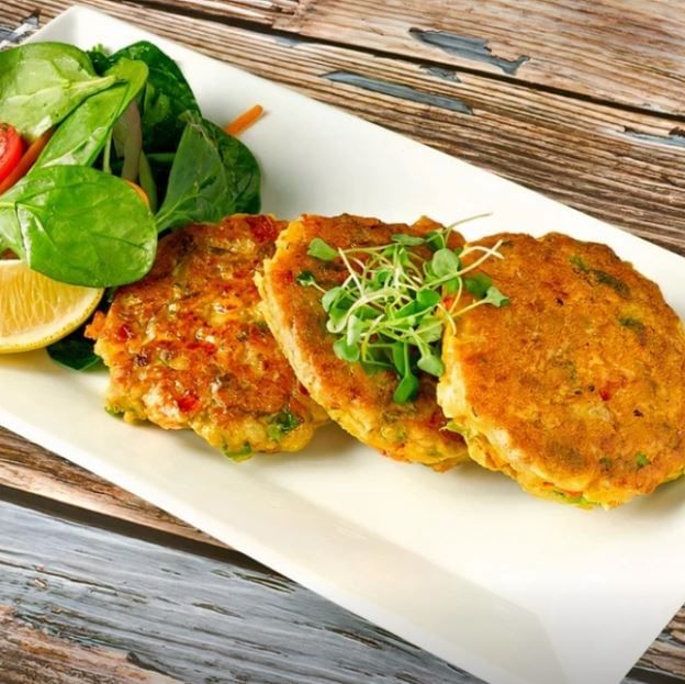Shrimp cakes blended with chili, cilantro, mint, garlic, ginger and spices
