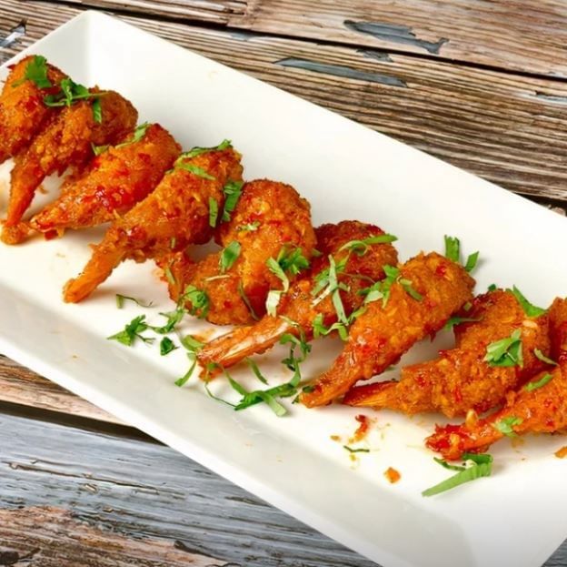 Fried shrimps, tossed in a spicy and tangy sauce made with soya sauce, vinegar, chili sauce